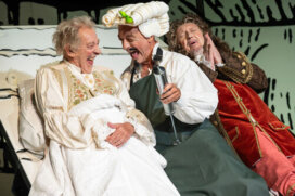 Wenn dann auch noch eine intrigante Stiefmutter, die nur auf schnelle Erbschaft aus ist und ein zwielichtiger Notar dem „Kranken“ zu Leibe rücken, gibt Molière seiner Farce, was nun mal die Mittel der Komödie damals und immer sein werden: Lachen, Verlachen, Auslachen, Einstecken, Austeilen und „auf die Schippe nehmen“.